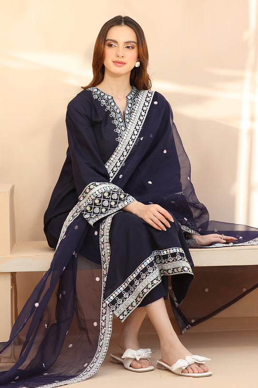 2 Piece - Embroidered Navy Blue Lawn Suit
