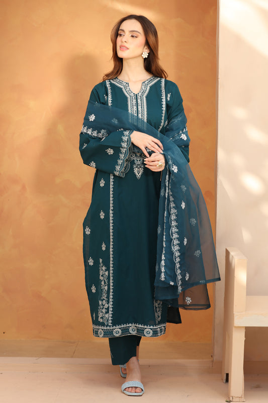 2 Piece Pret Embroidered Teal Blue Dhanak Marina Suit